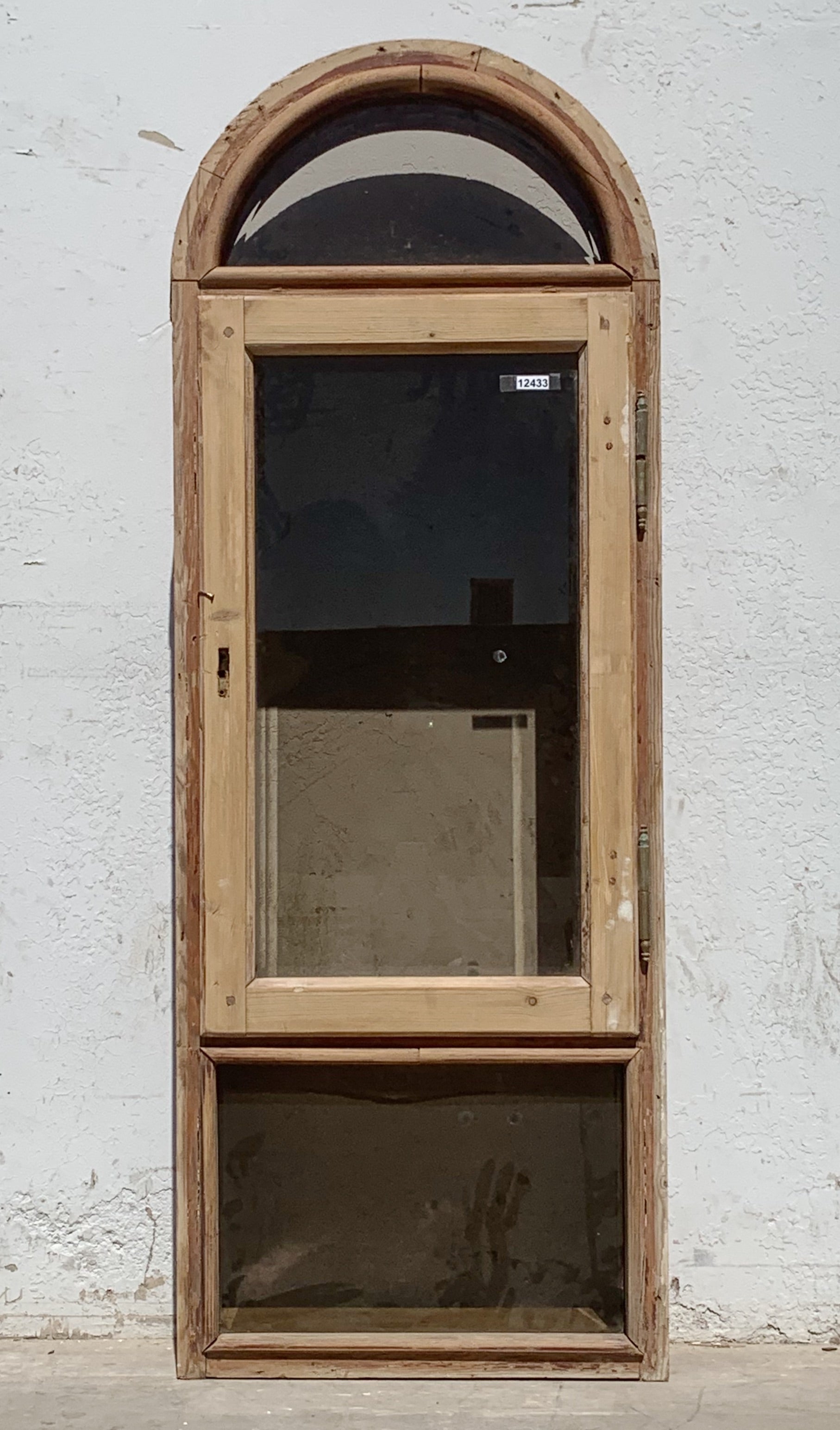Arched Single Pane Brown Beveled Glass Window with Half-Round Transoms