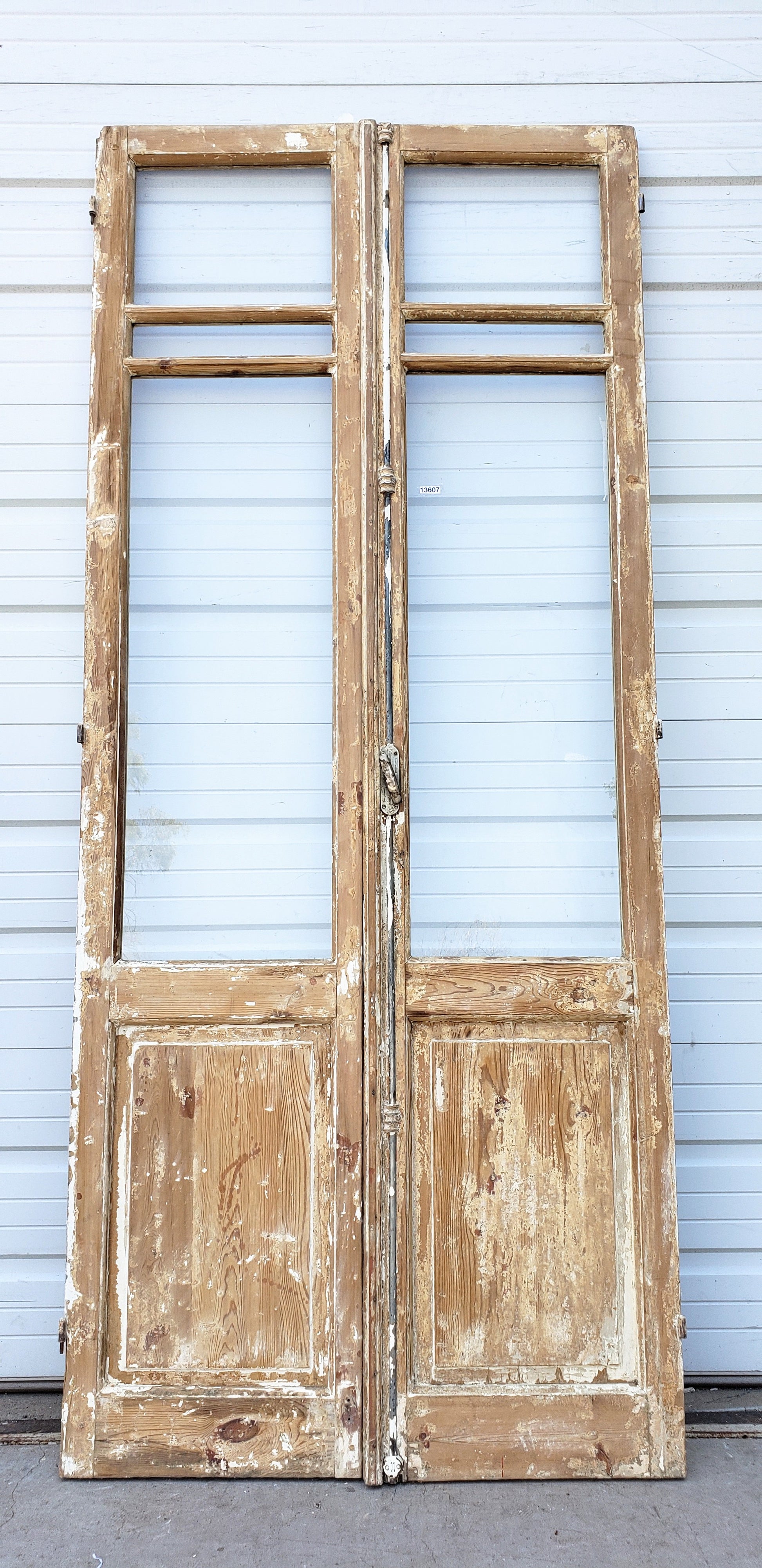Pair of Washed Wood Antique Doors with 3-Lites