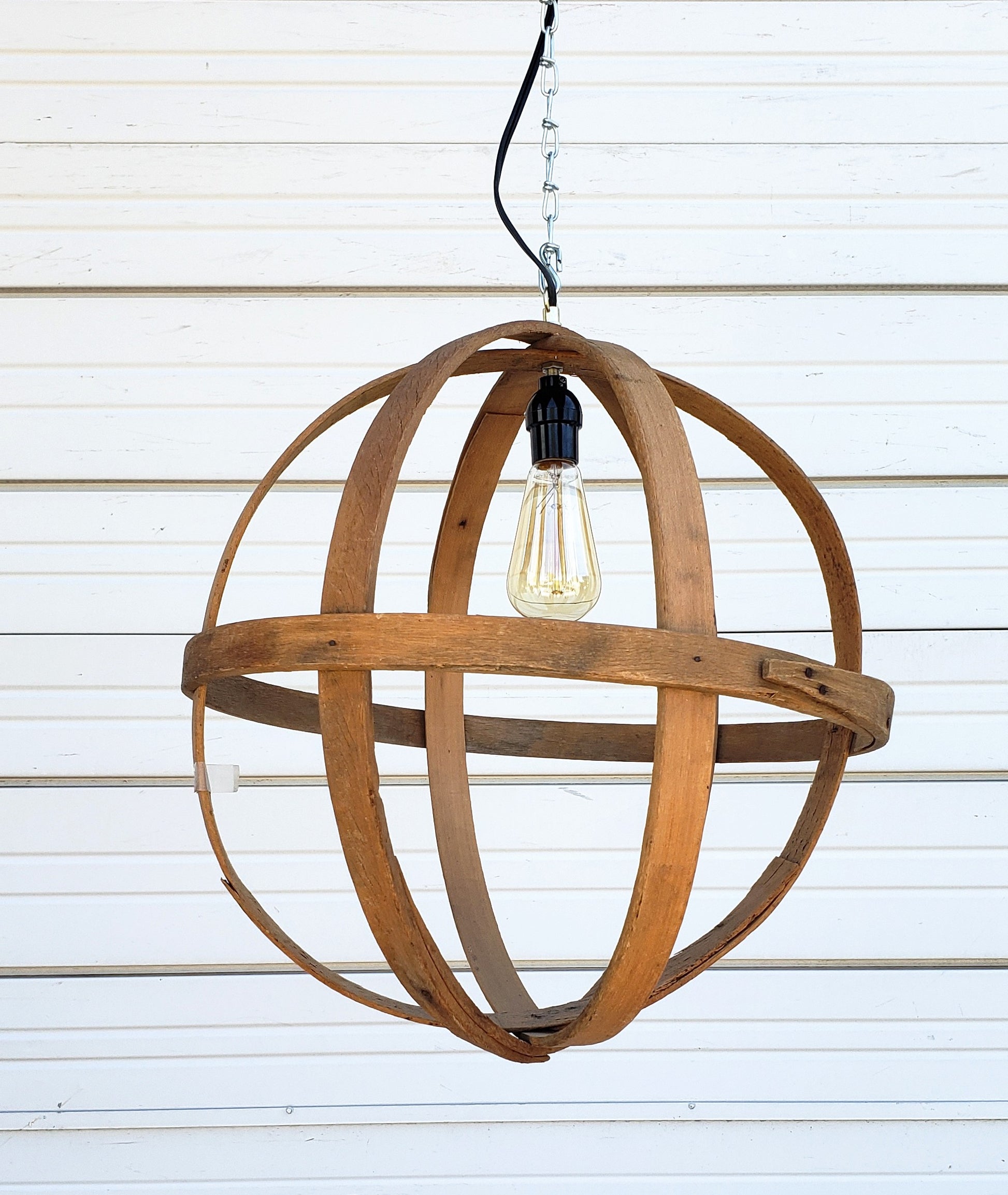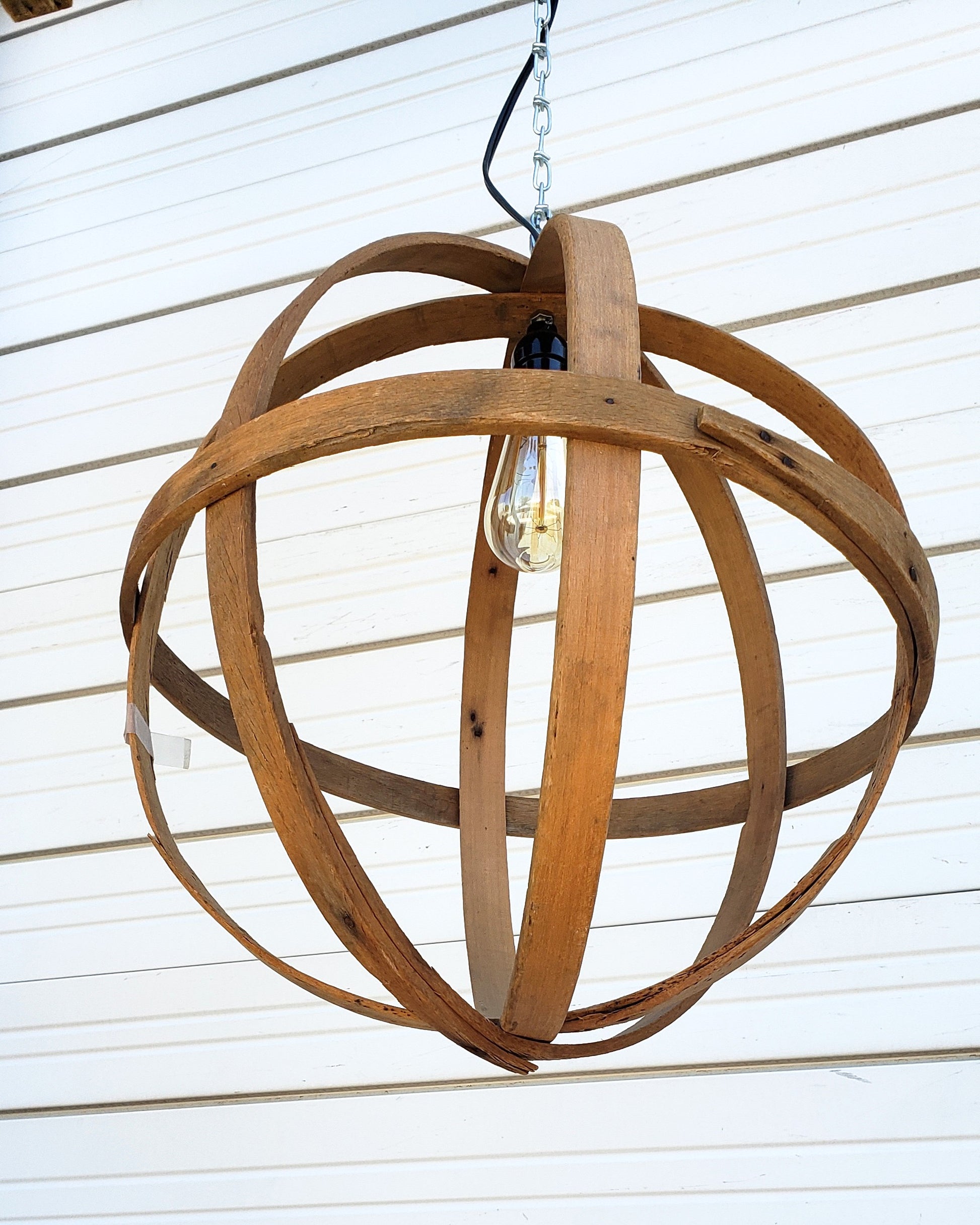 Repurposed Wooden Orb Pendant Light