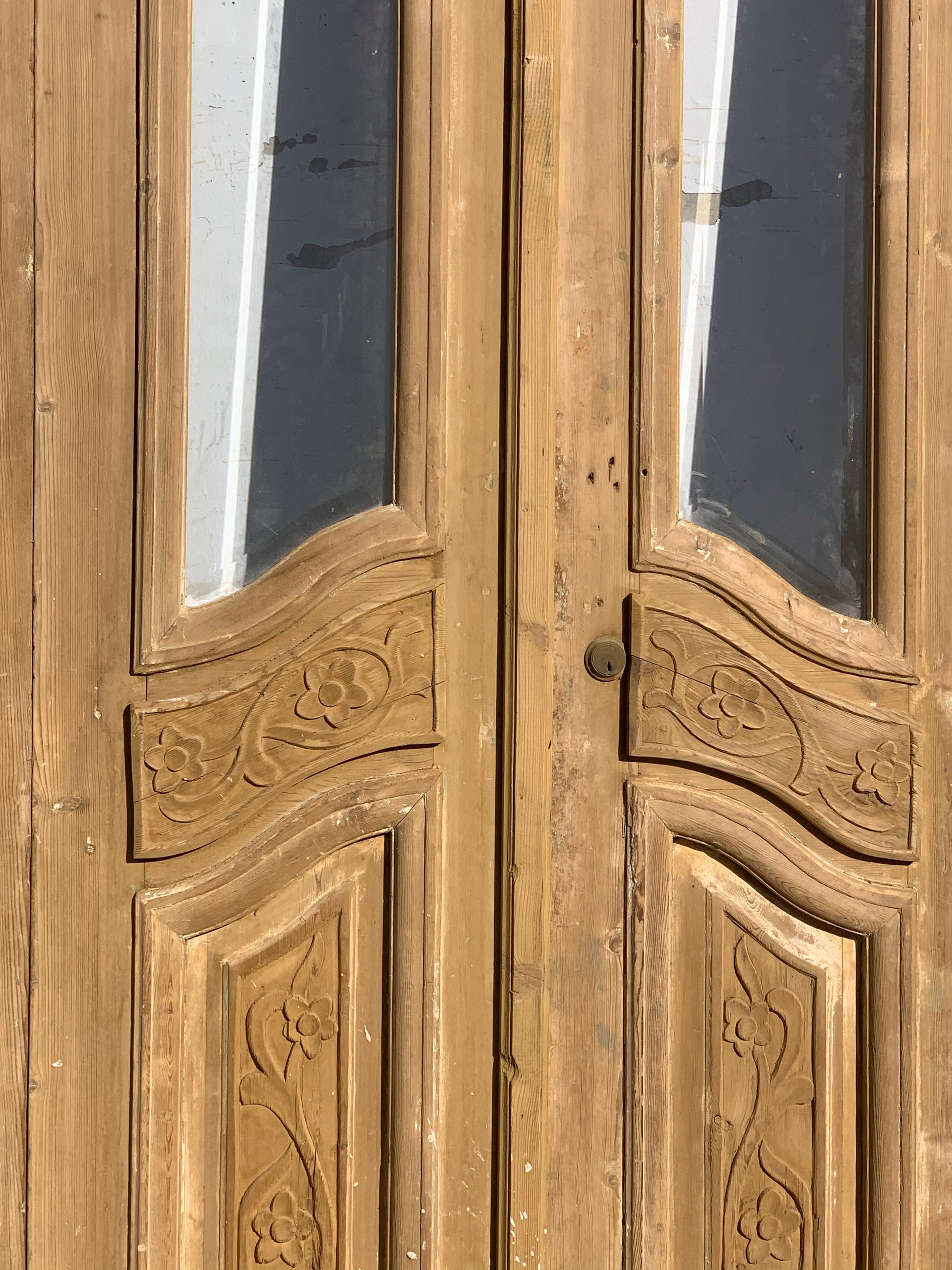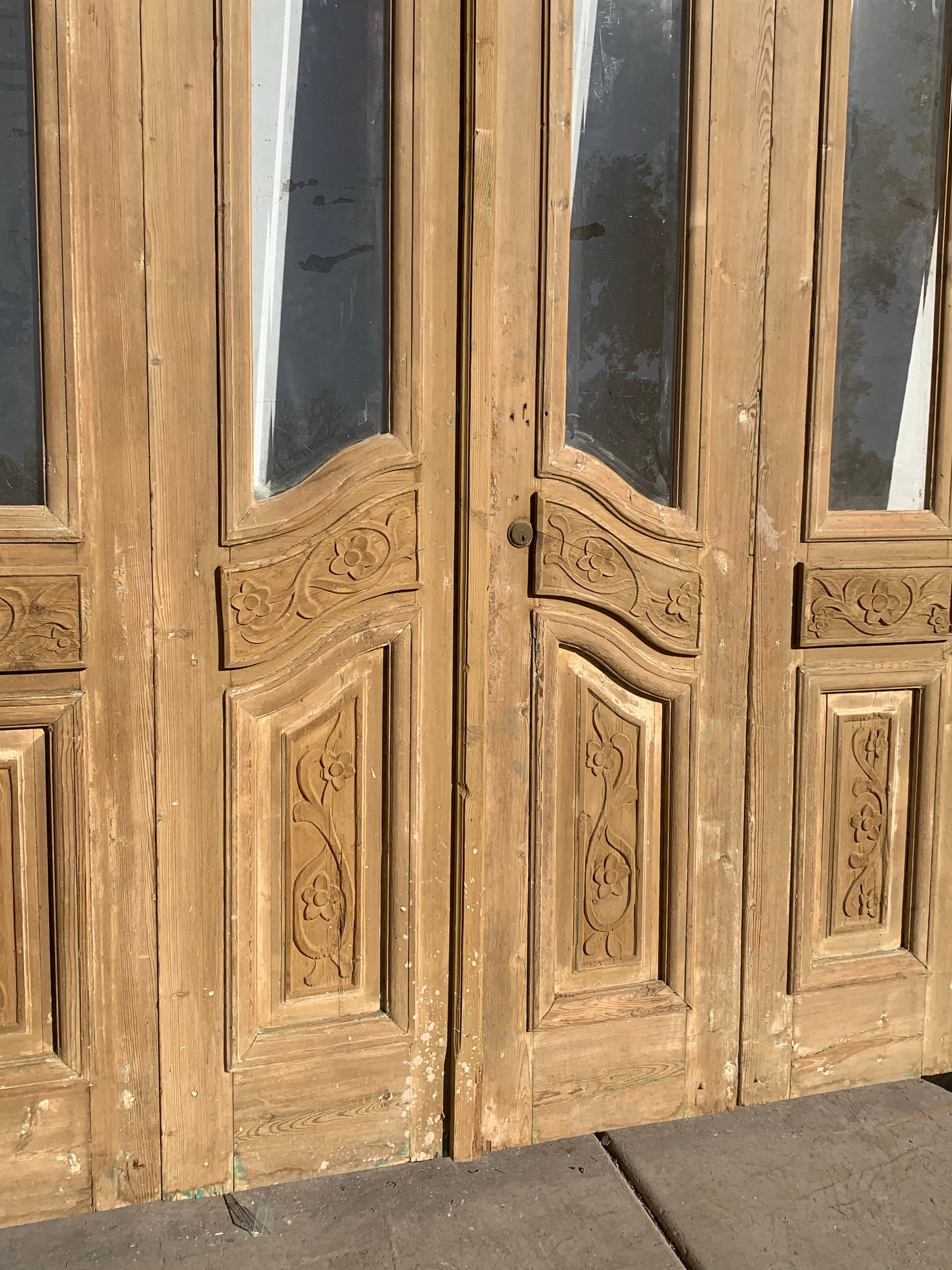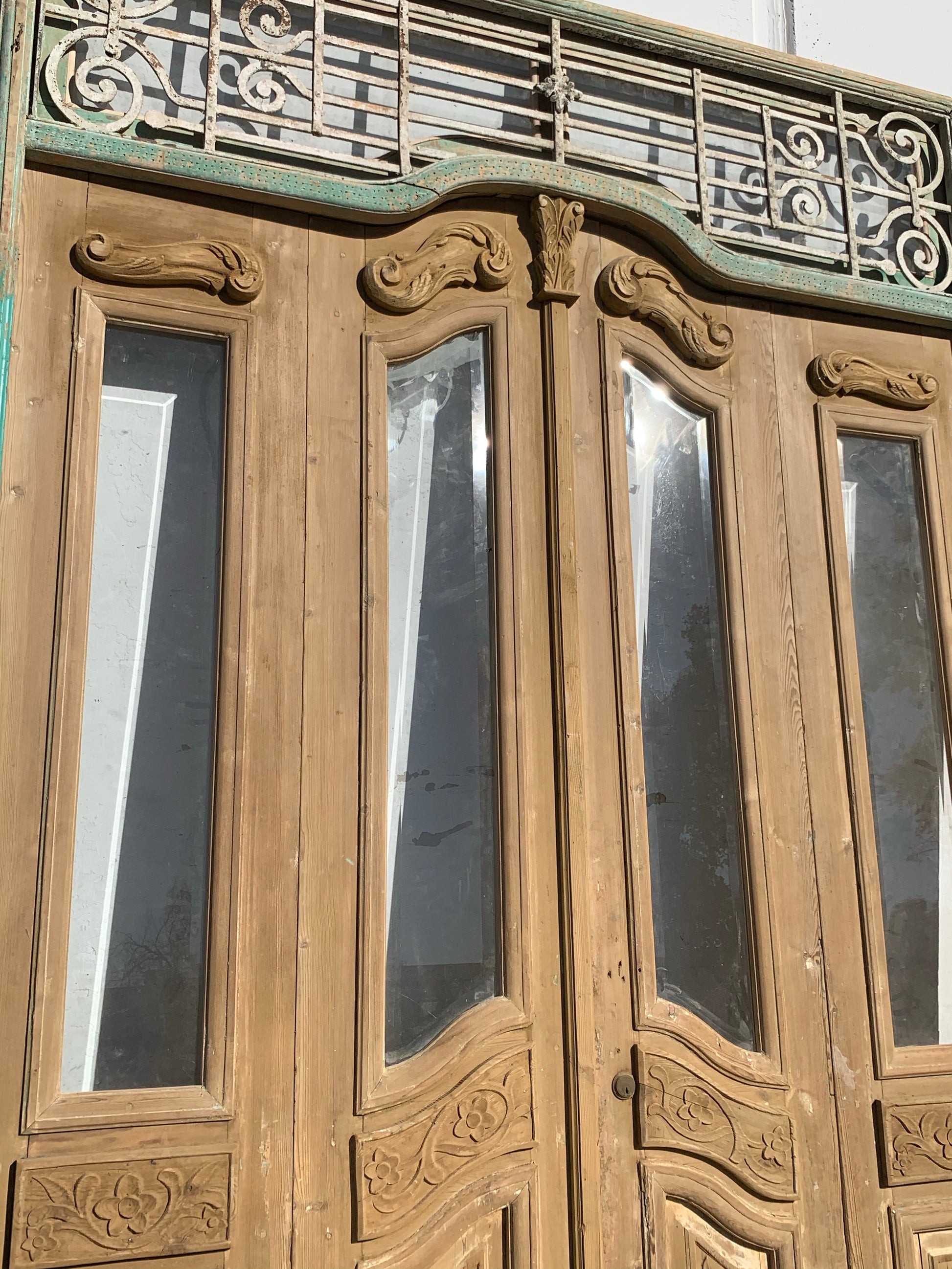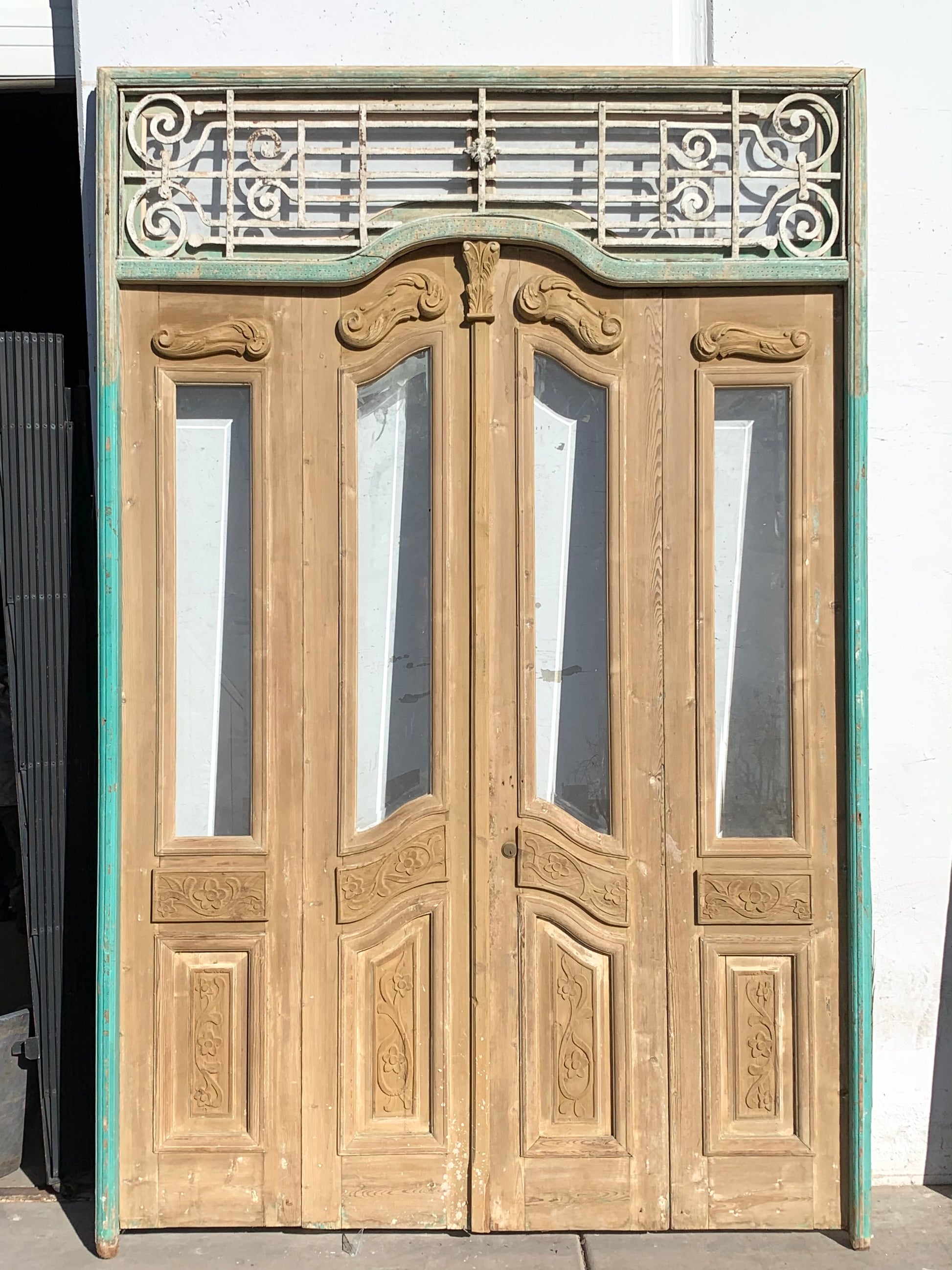 Set of 4 Carved Antique Doors with Iron Scroll Transom