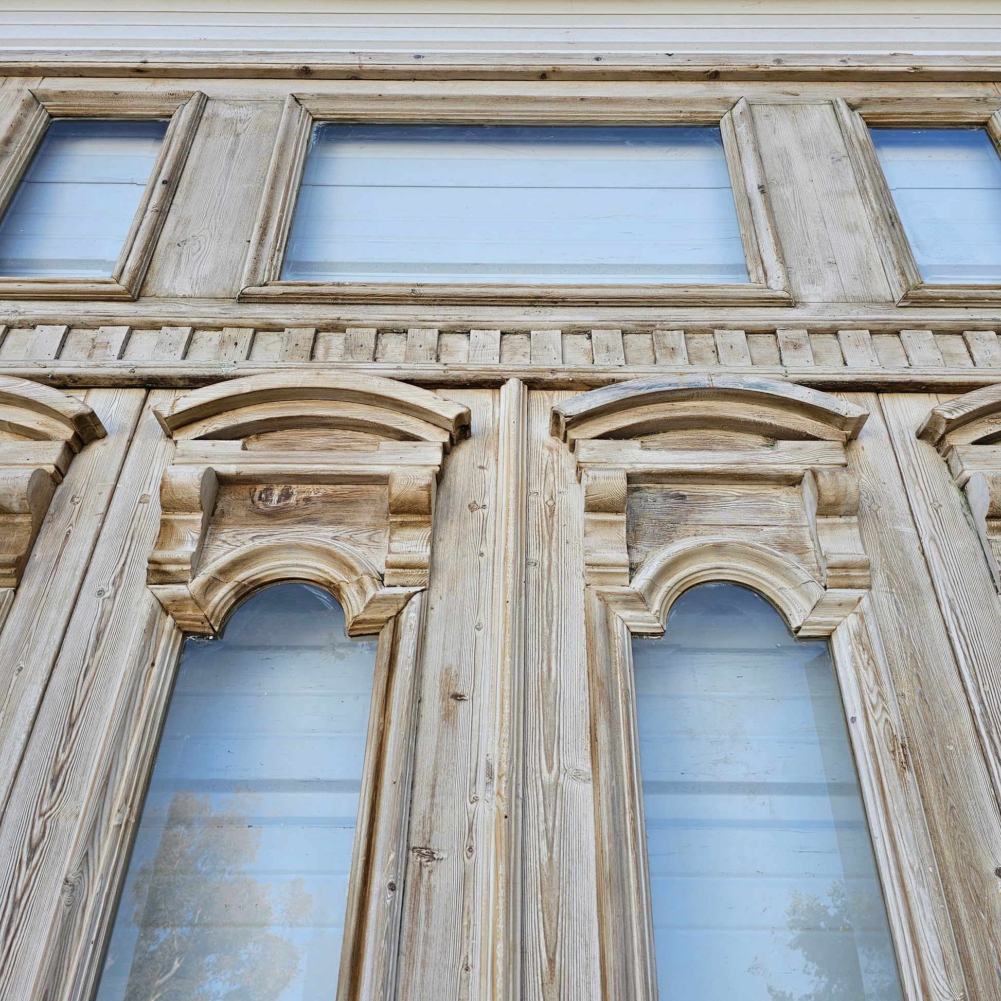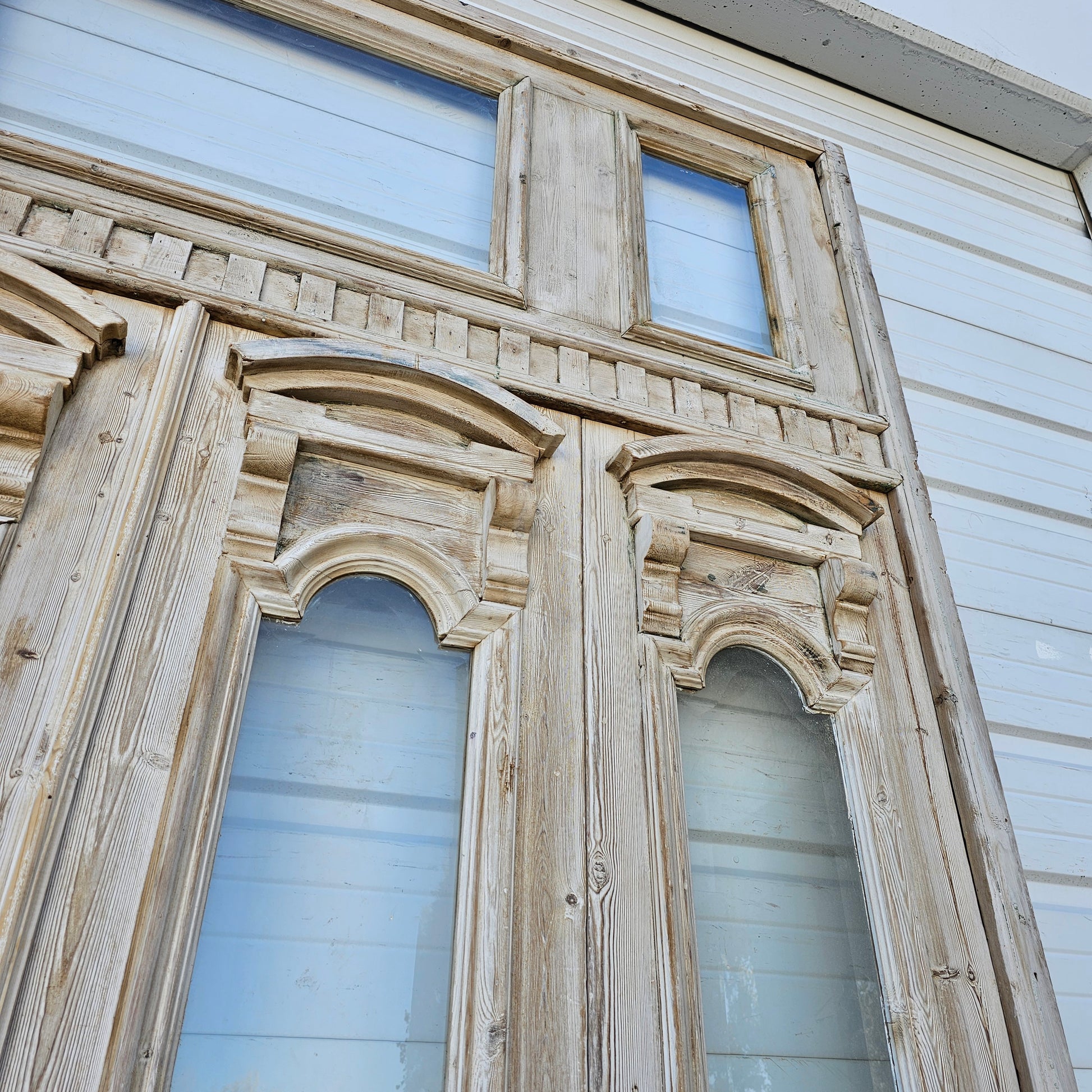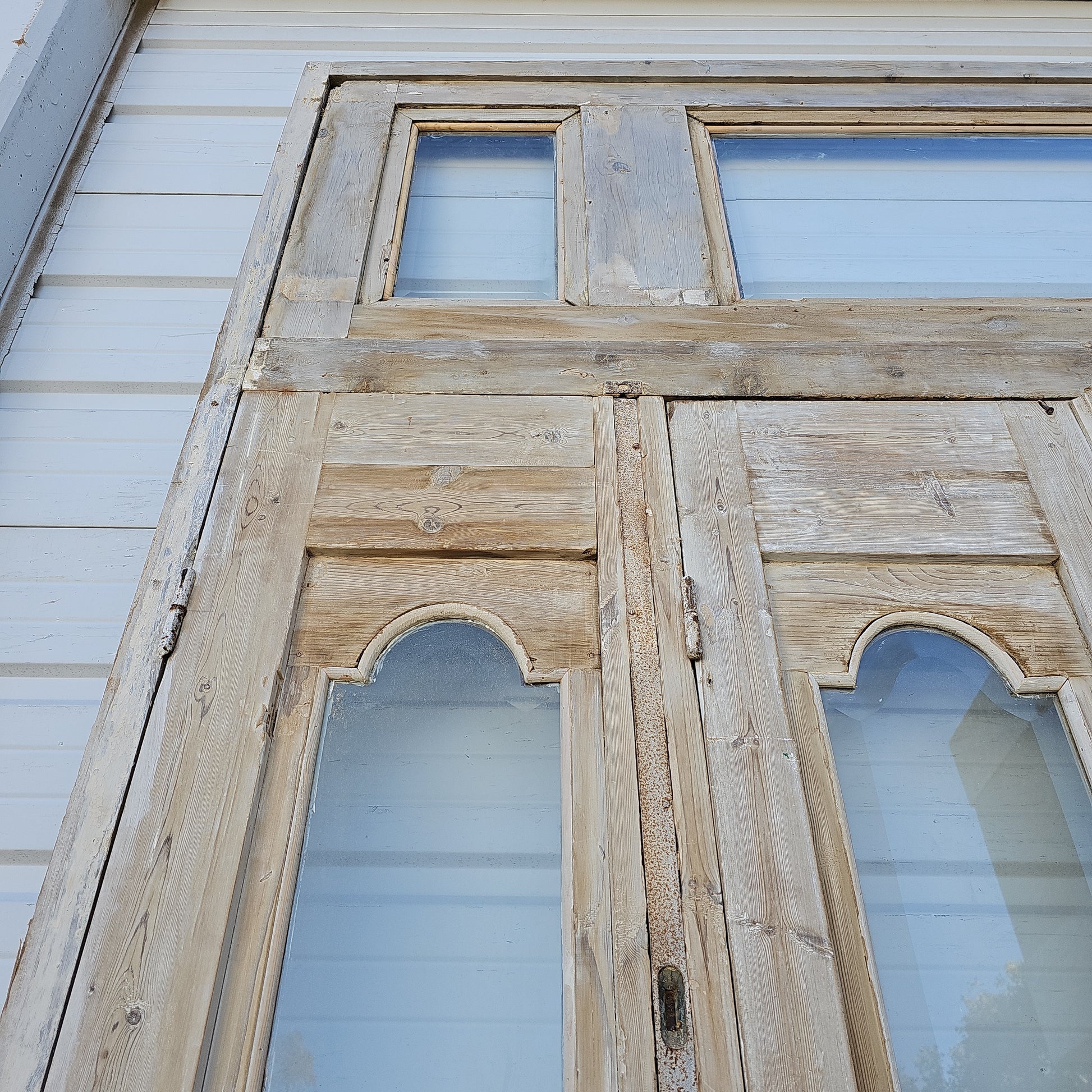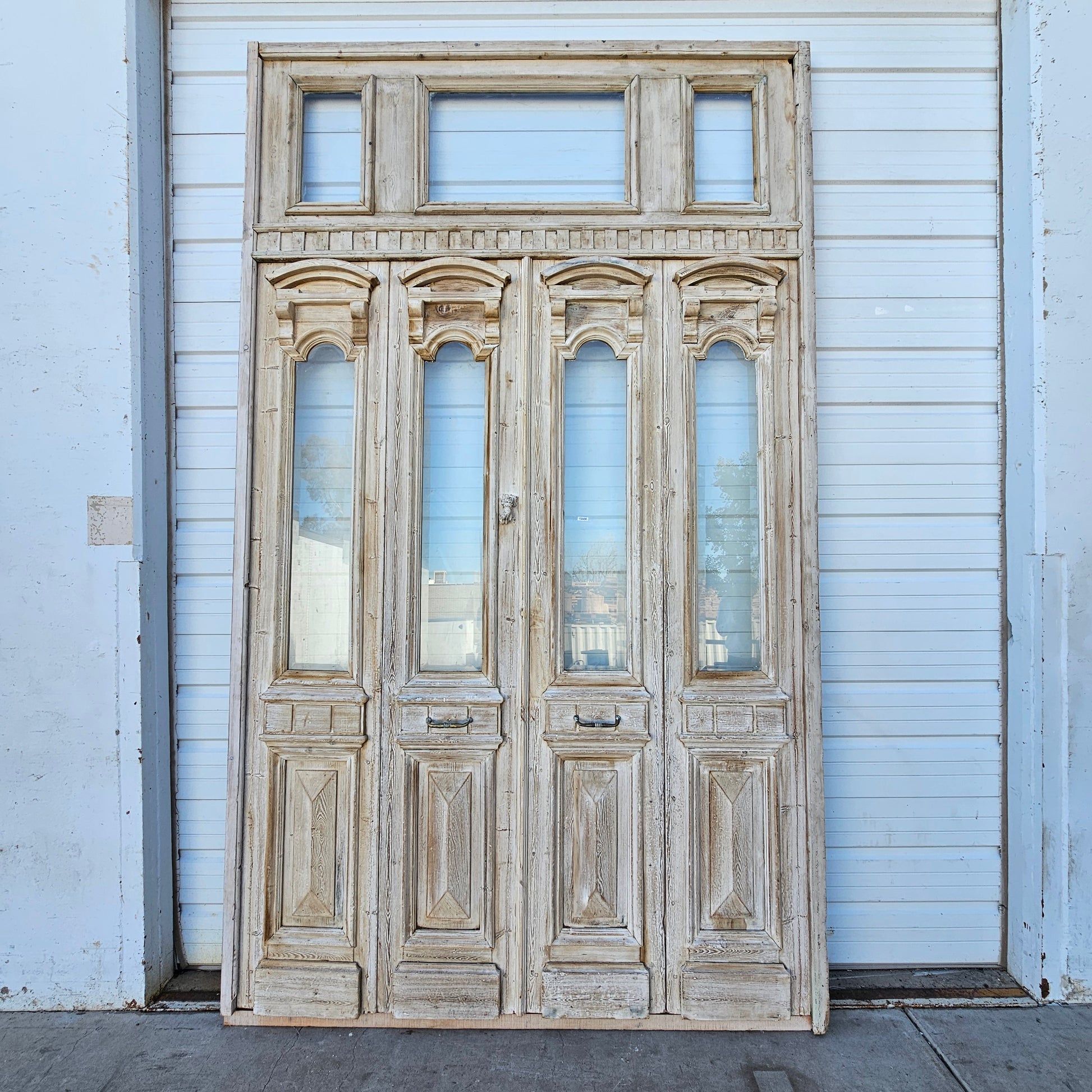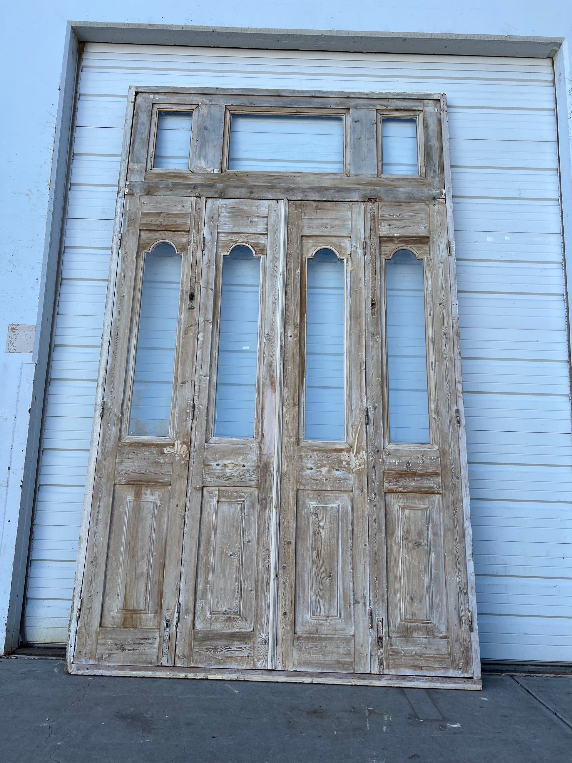 Set of 4 Painted Wood Doors and Transom w/7 Panes