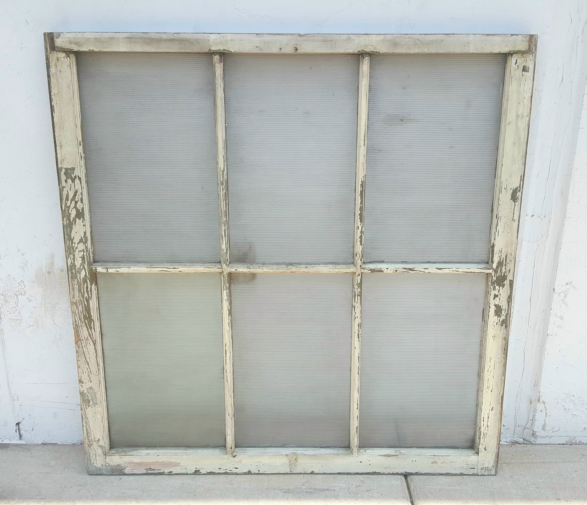 6 Pane White Wood Window with Ribbed Frosted Glass