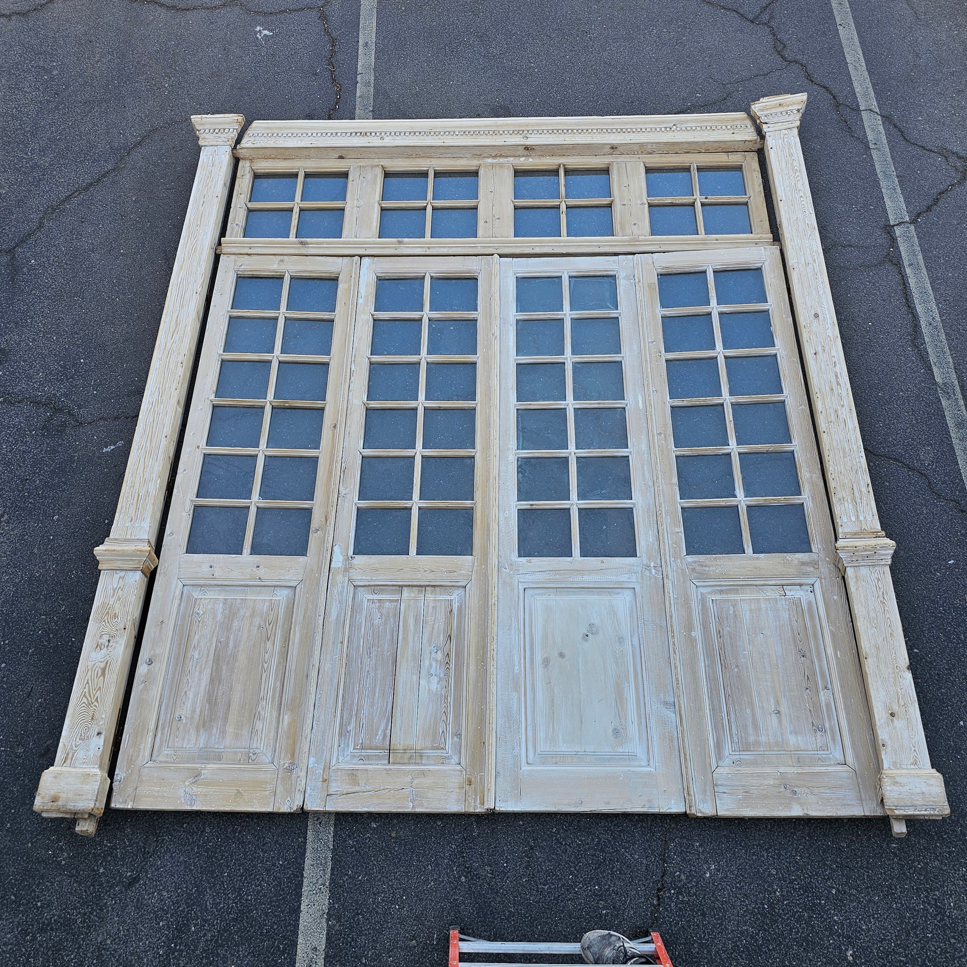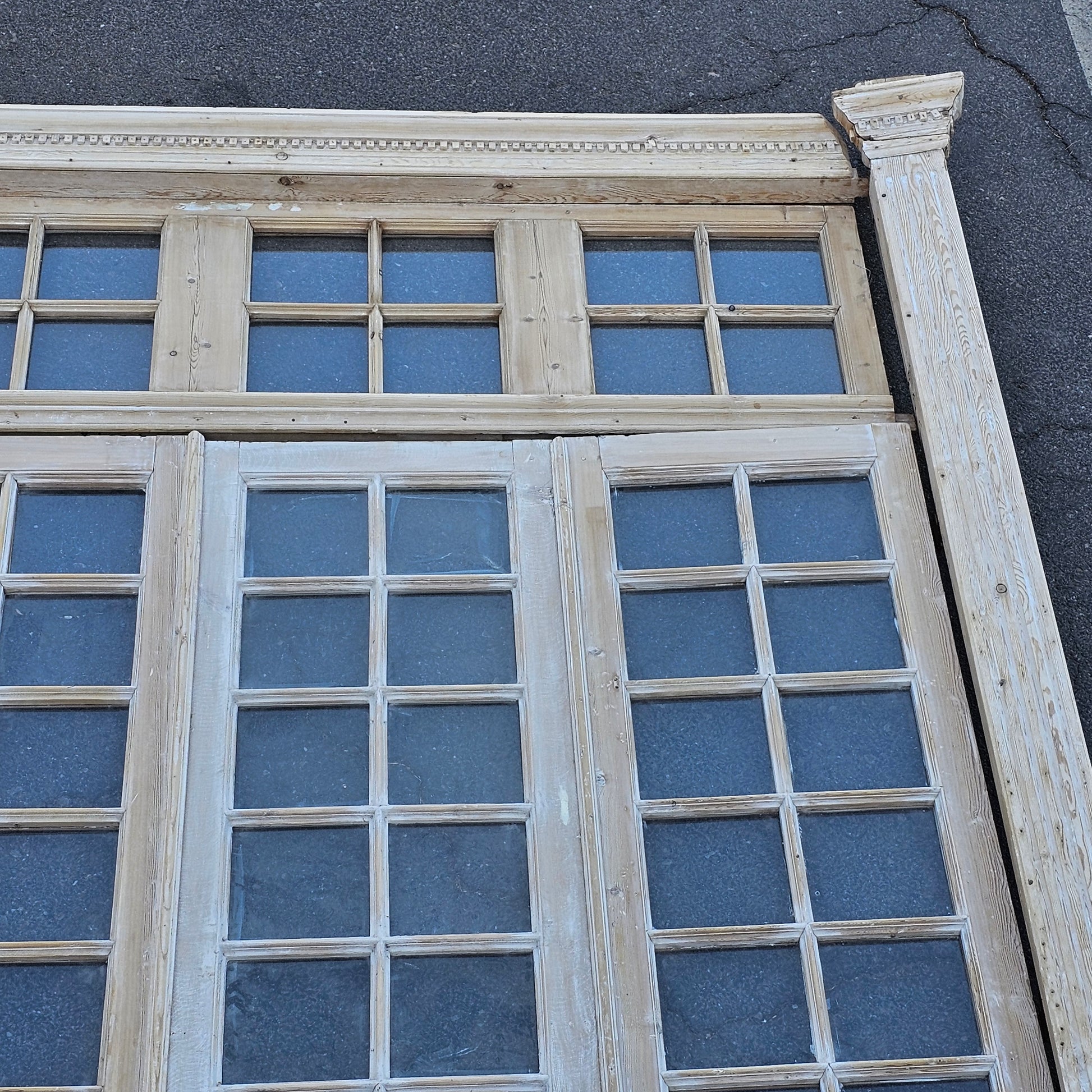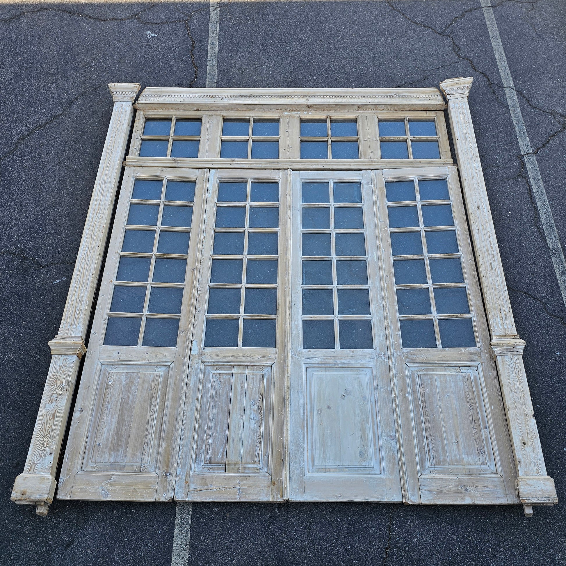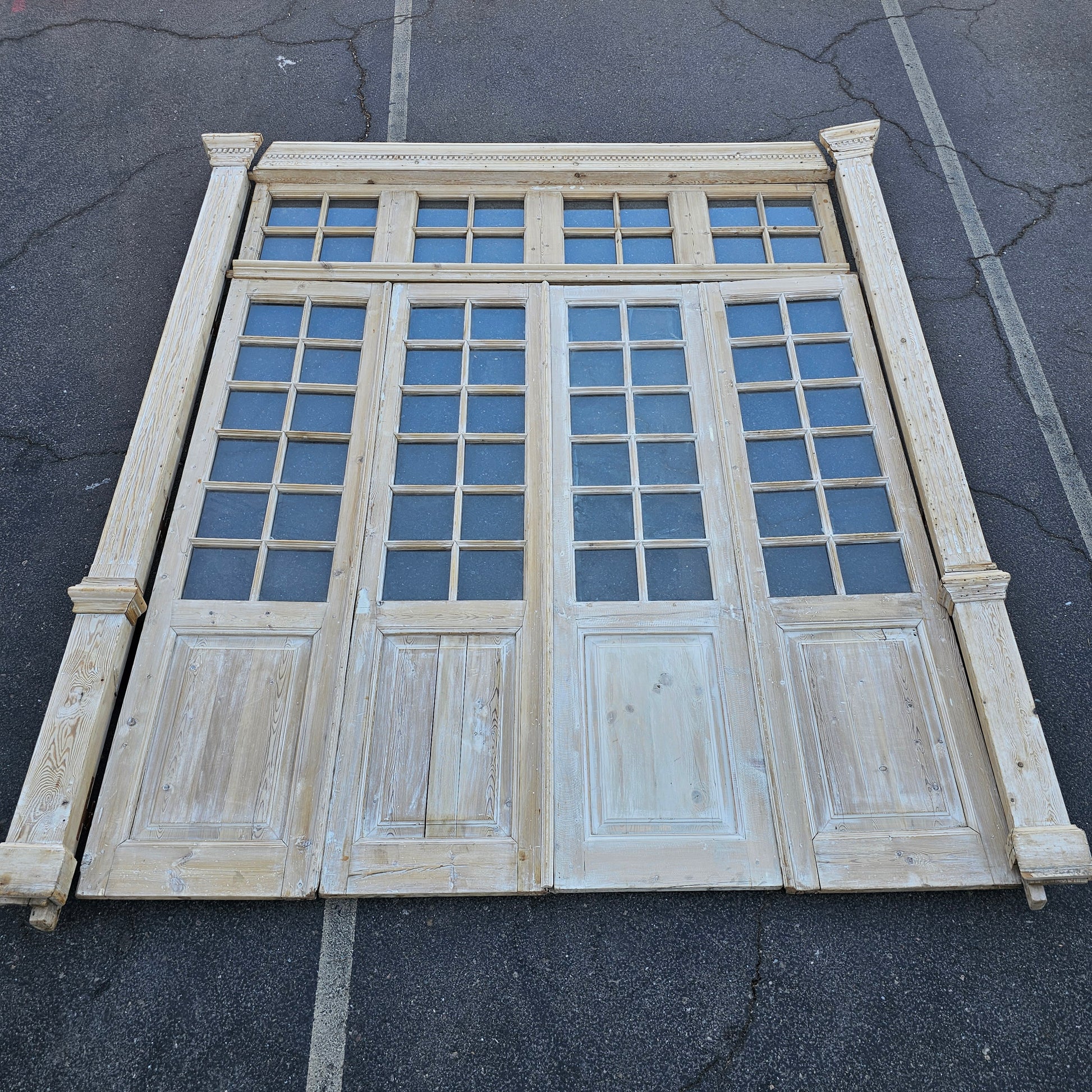 Set of 4 Washed Wood Doors and Transom w/64 Glass Panes
