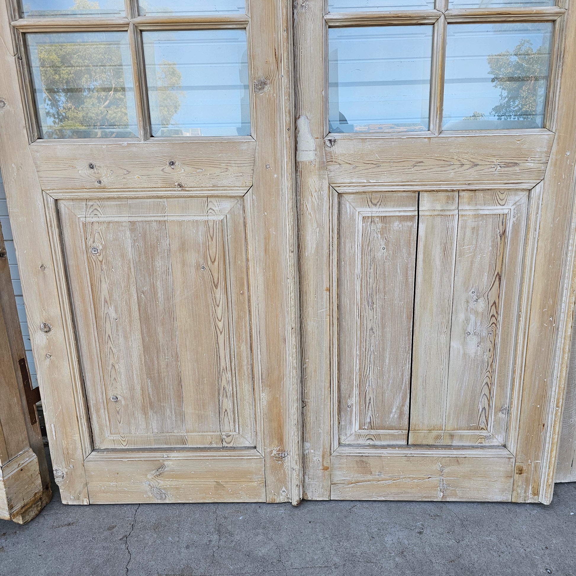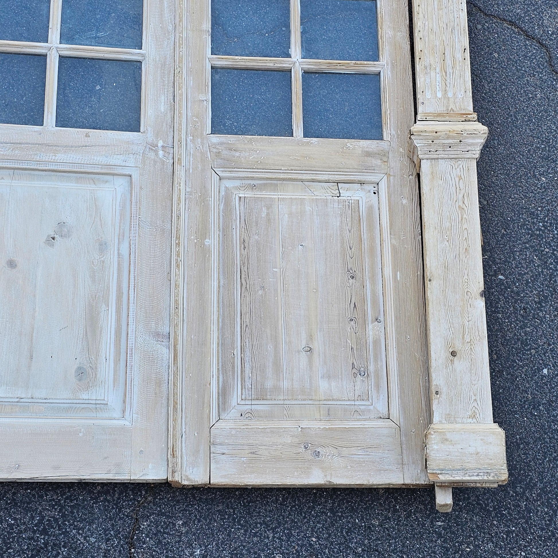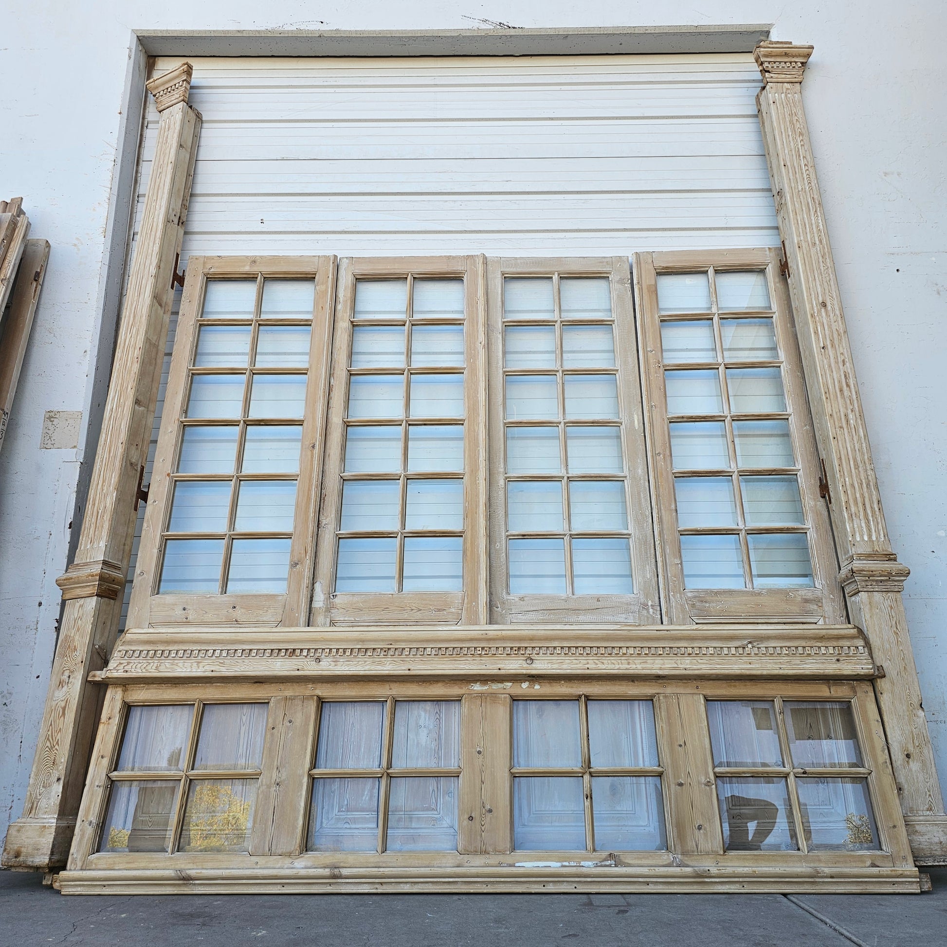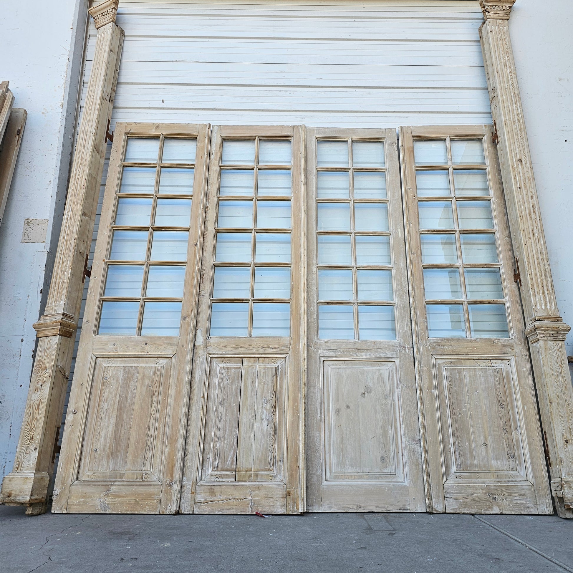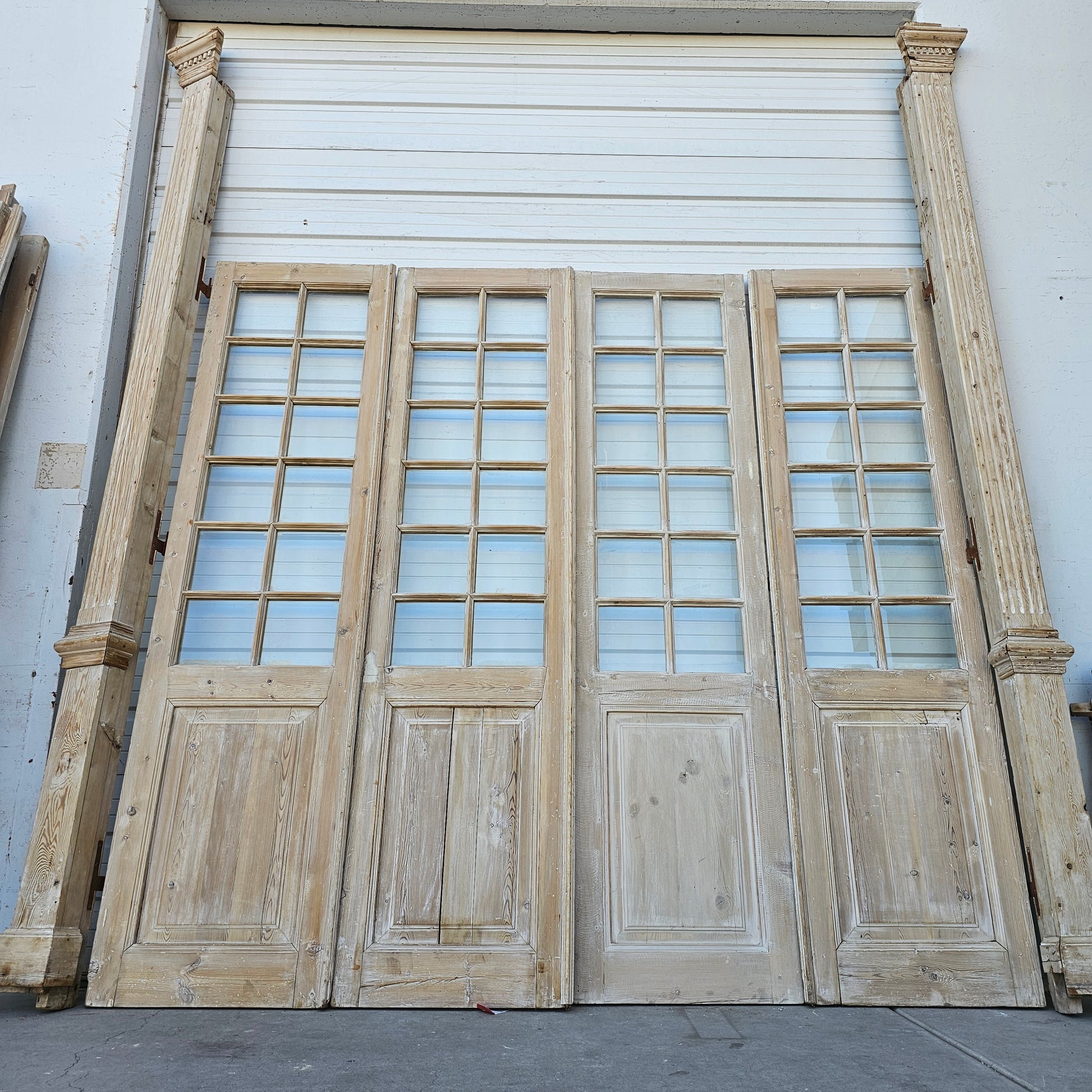 Set of 4 Washed Wood Doors and Transom w/64 Glass Panes
