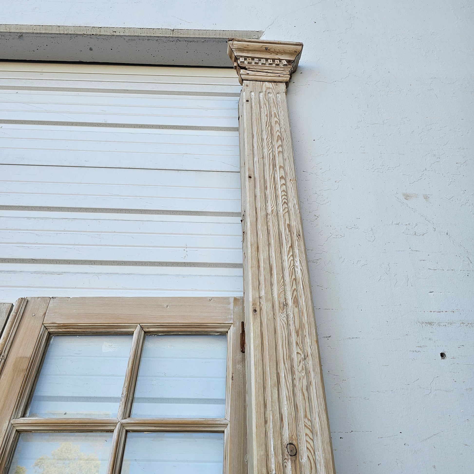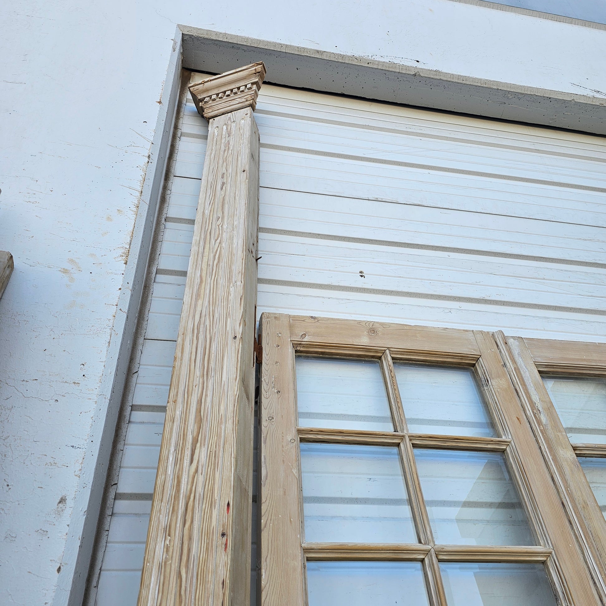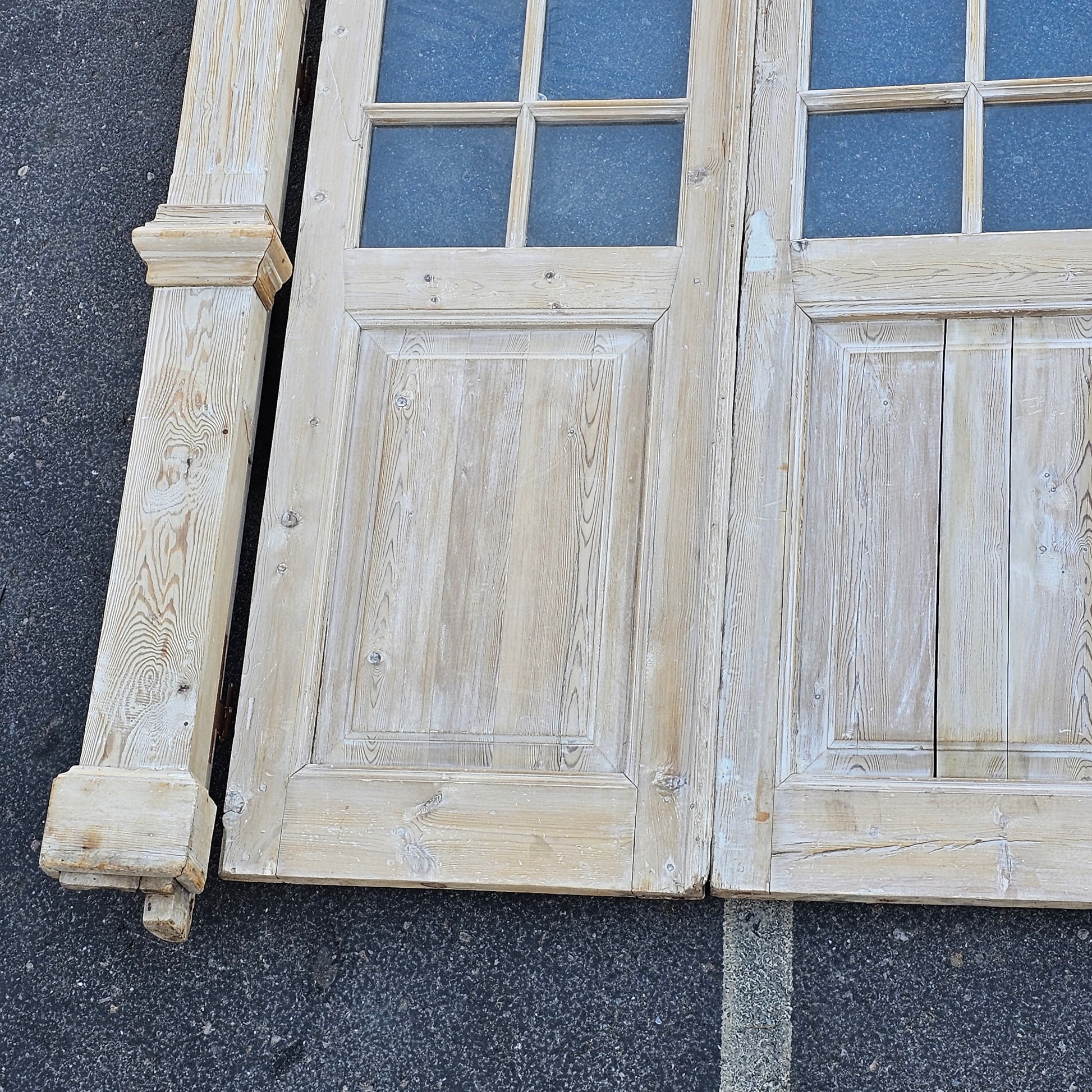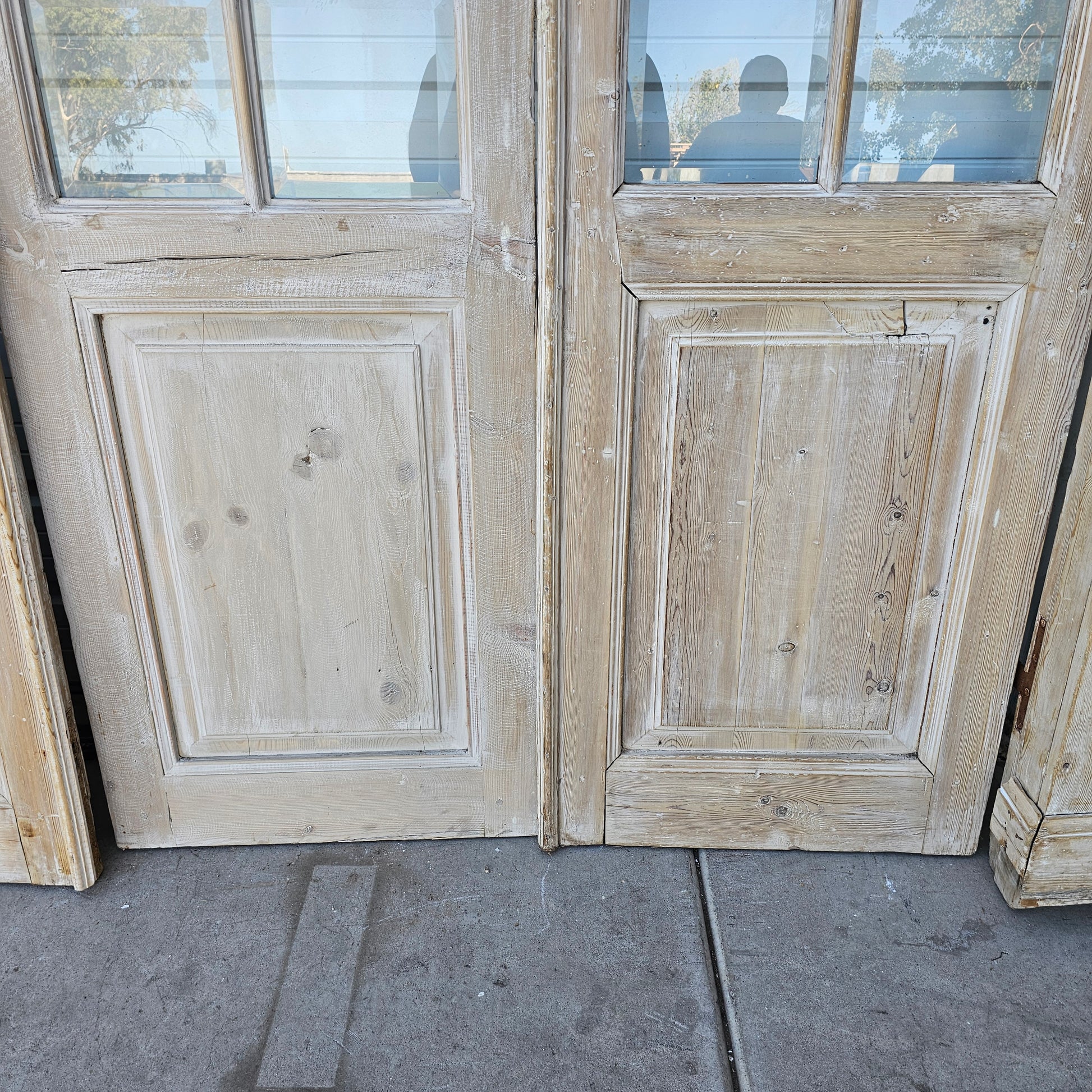 Set of 4 Washed Wood Doors and Transom w/64 Glass Panes