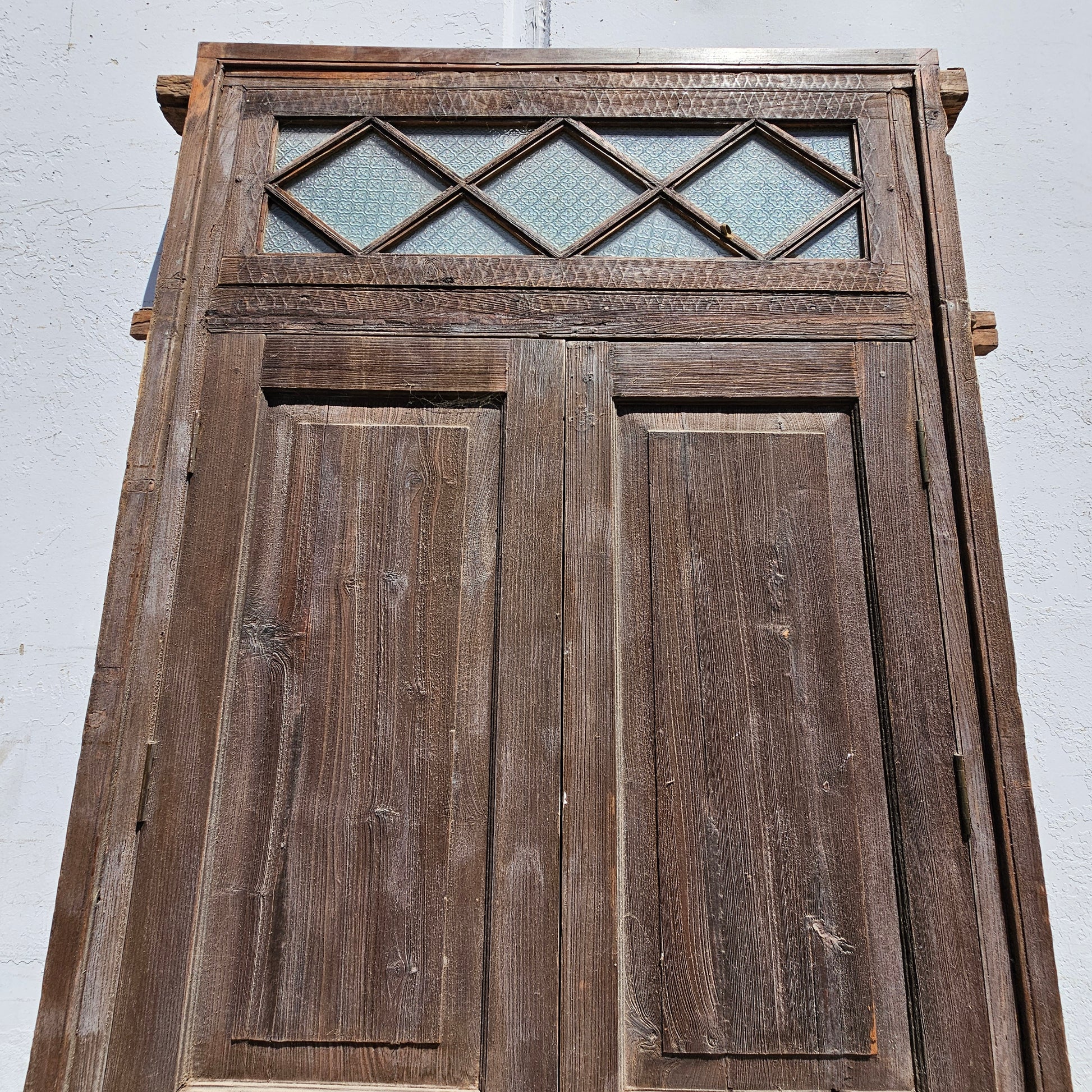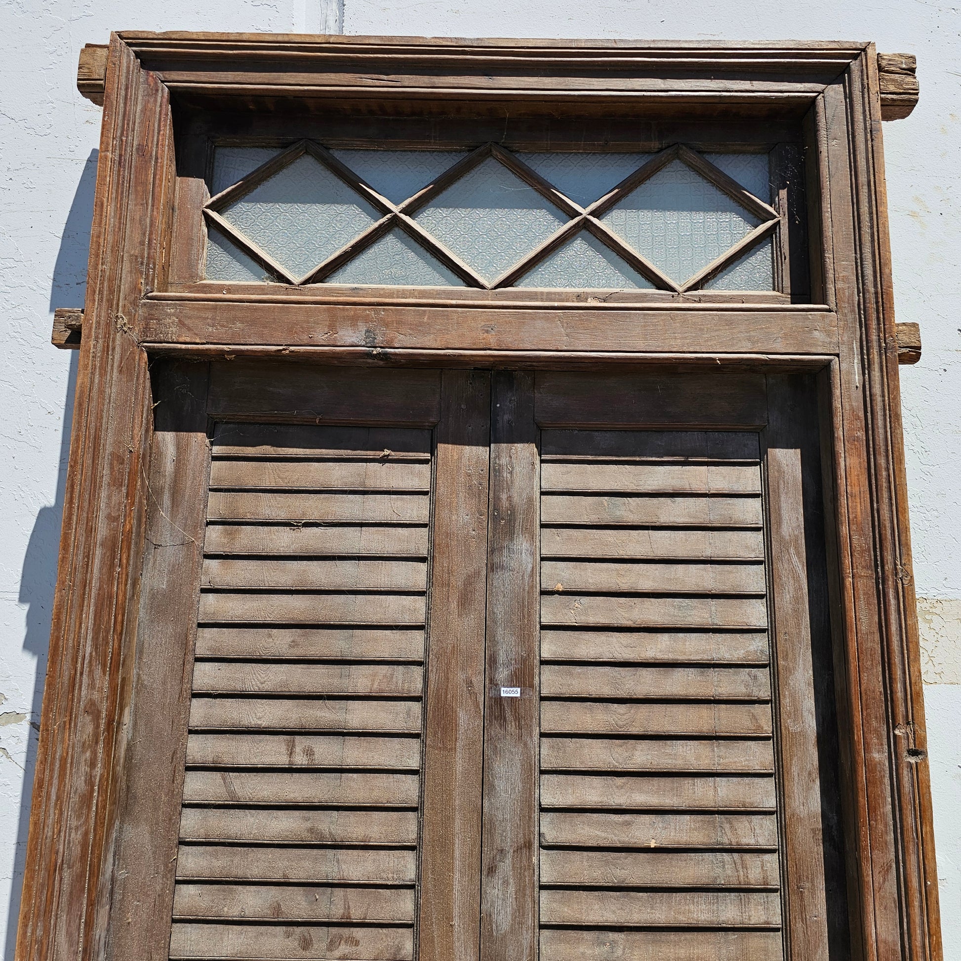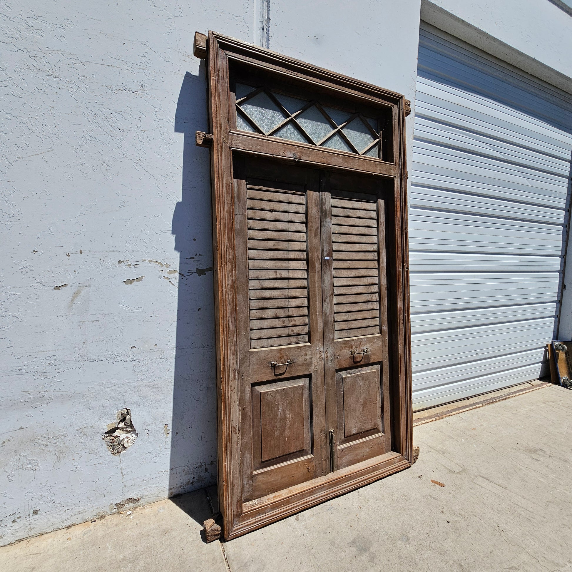 Pair of Wood Shuttered Doors with Glass Transom in Frame