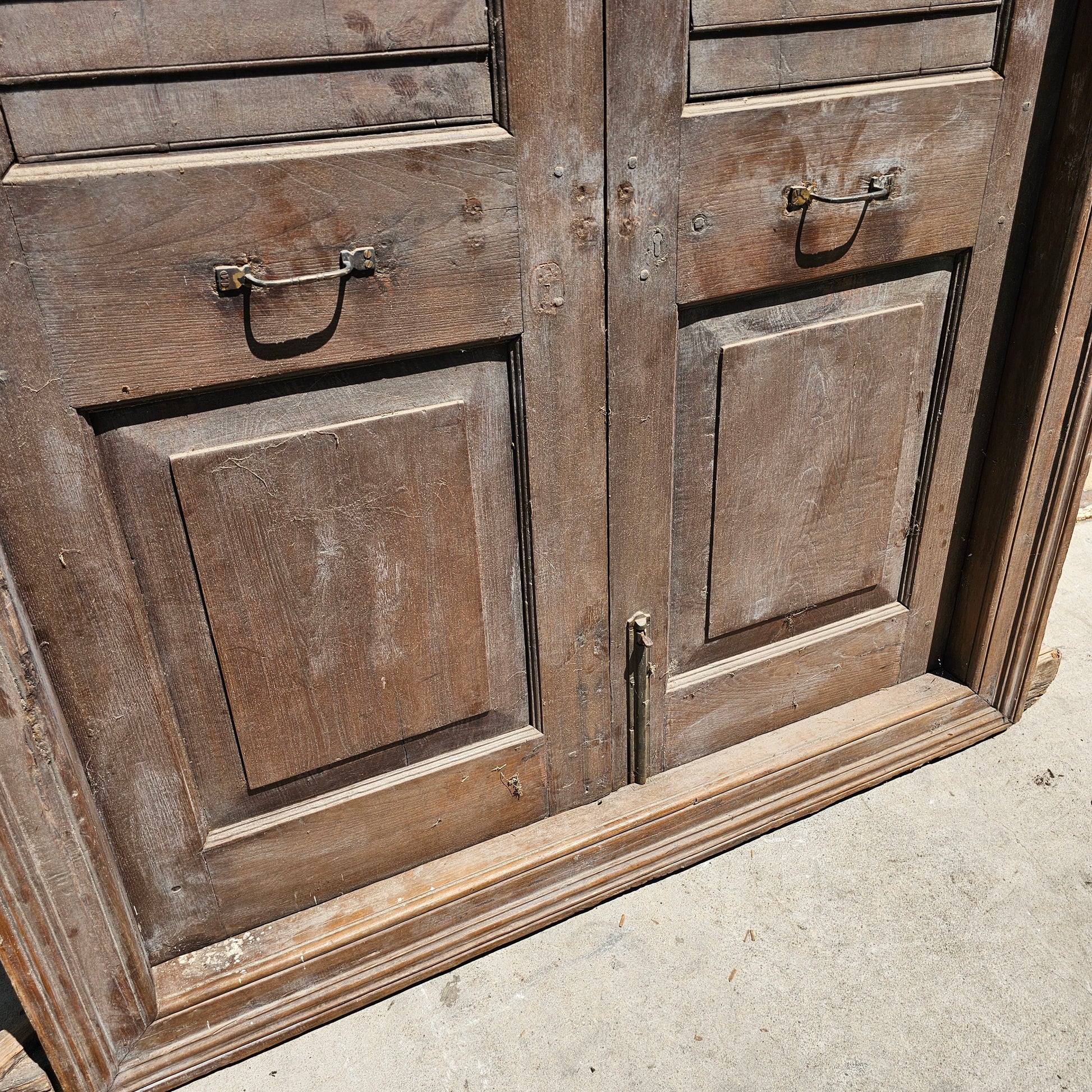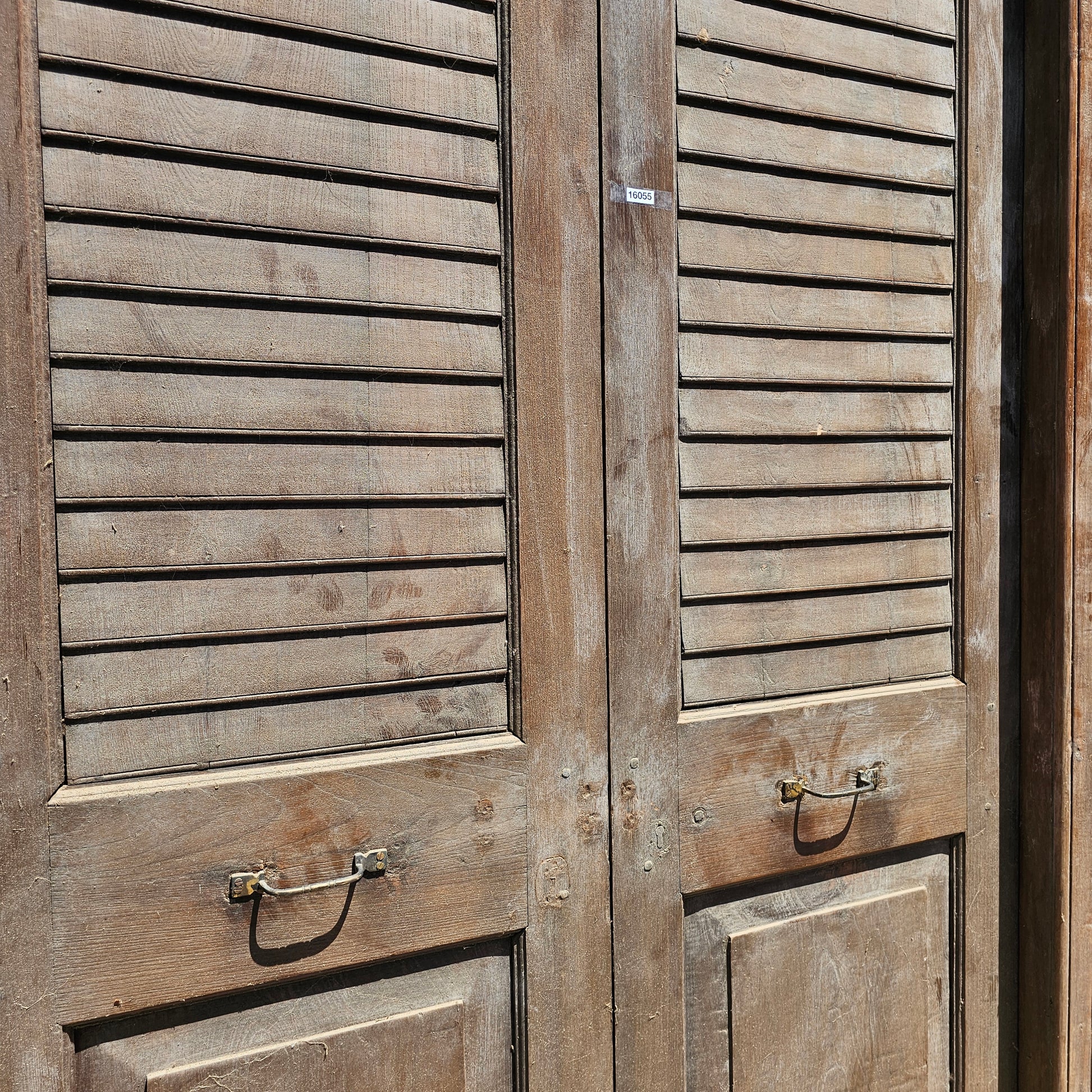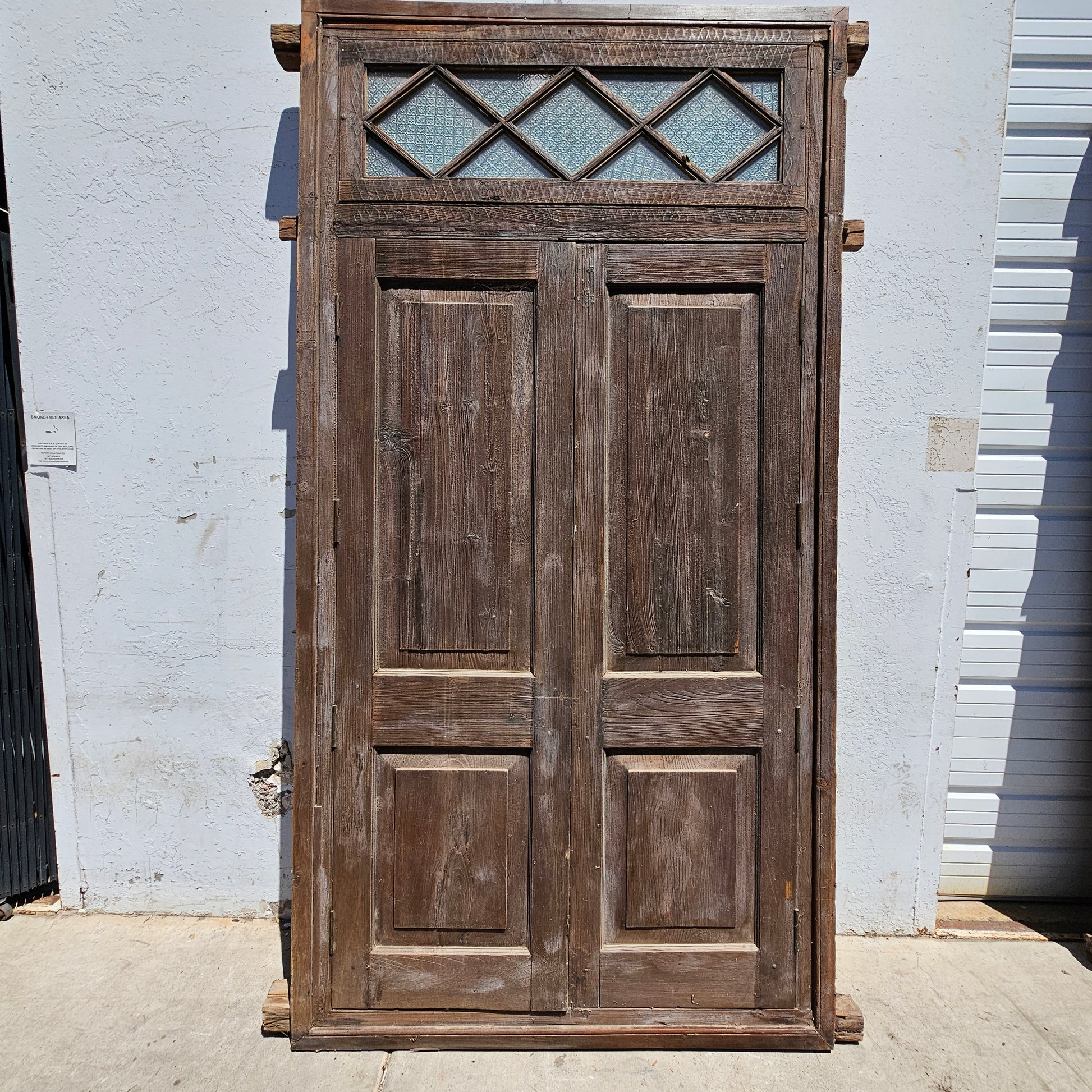 Pair of Wood Shuttered Doors with Glass Transom in Frame