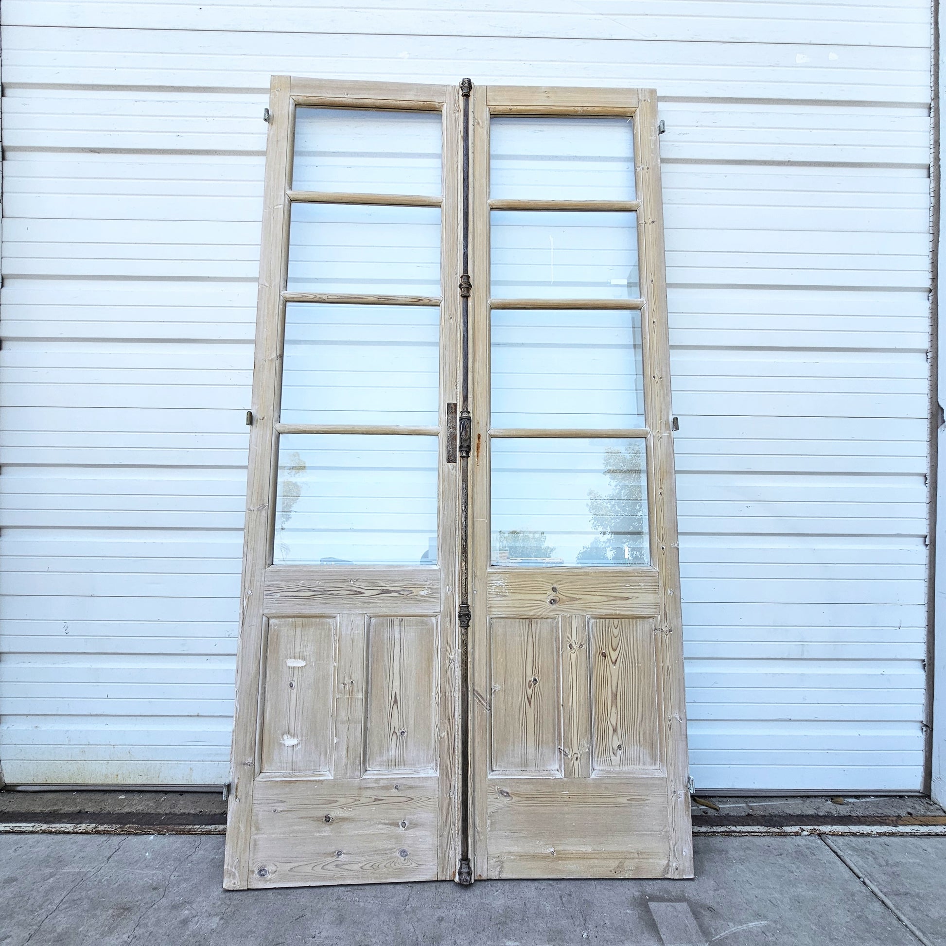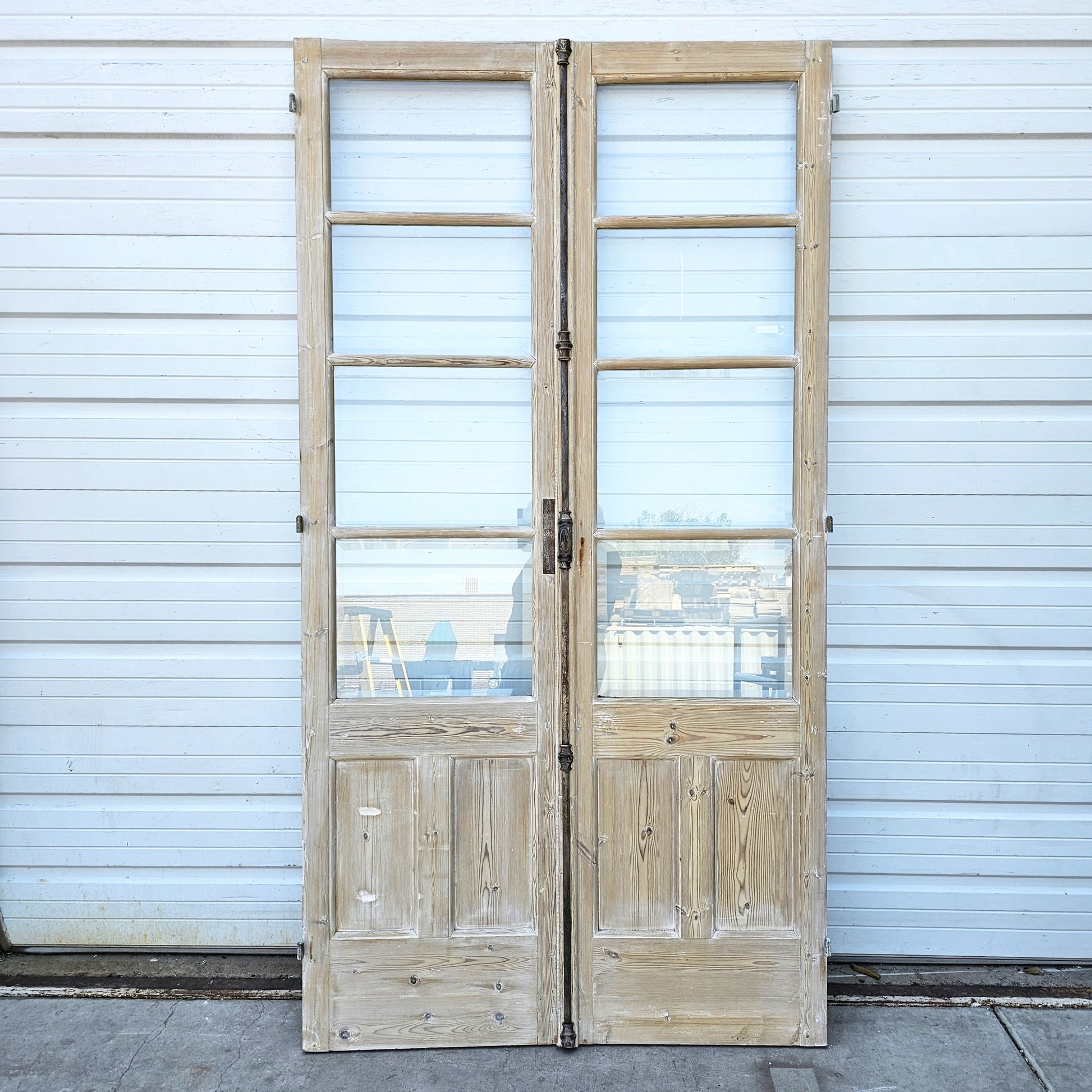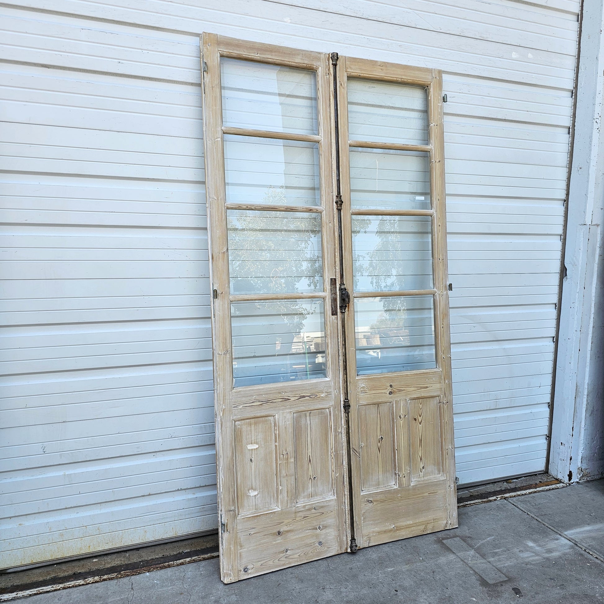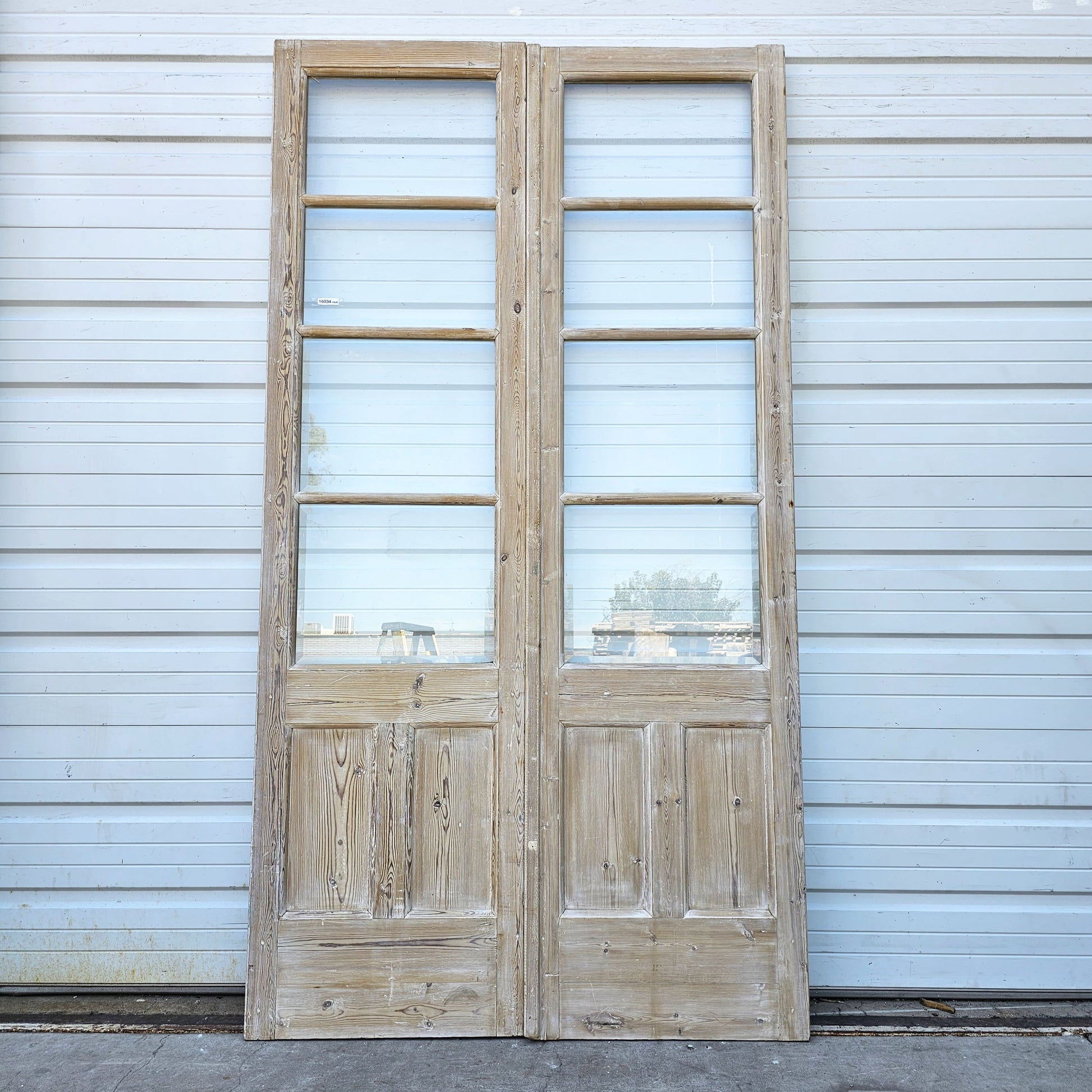Pair of Wood French Doors w/8 Beveled Glass Panes